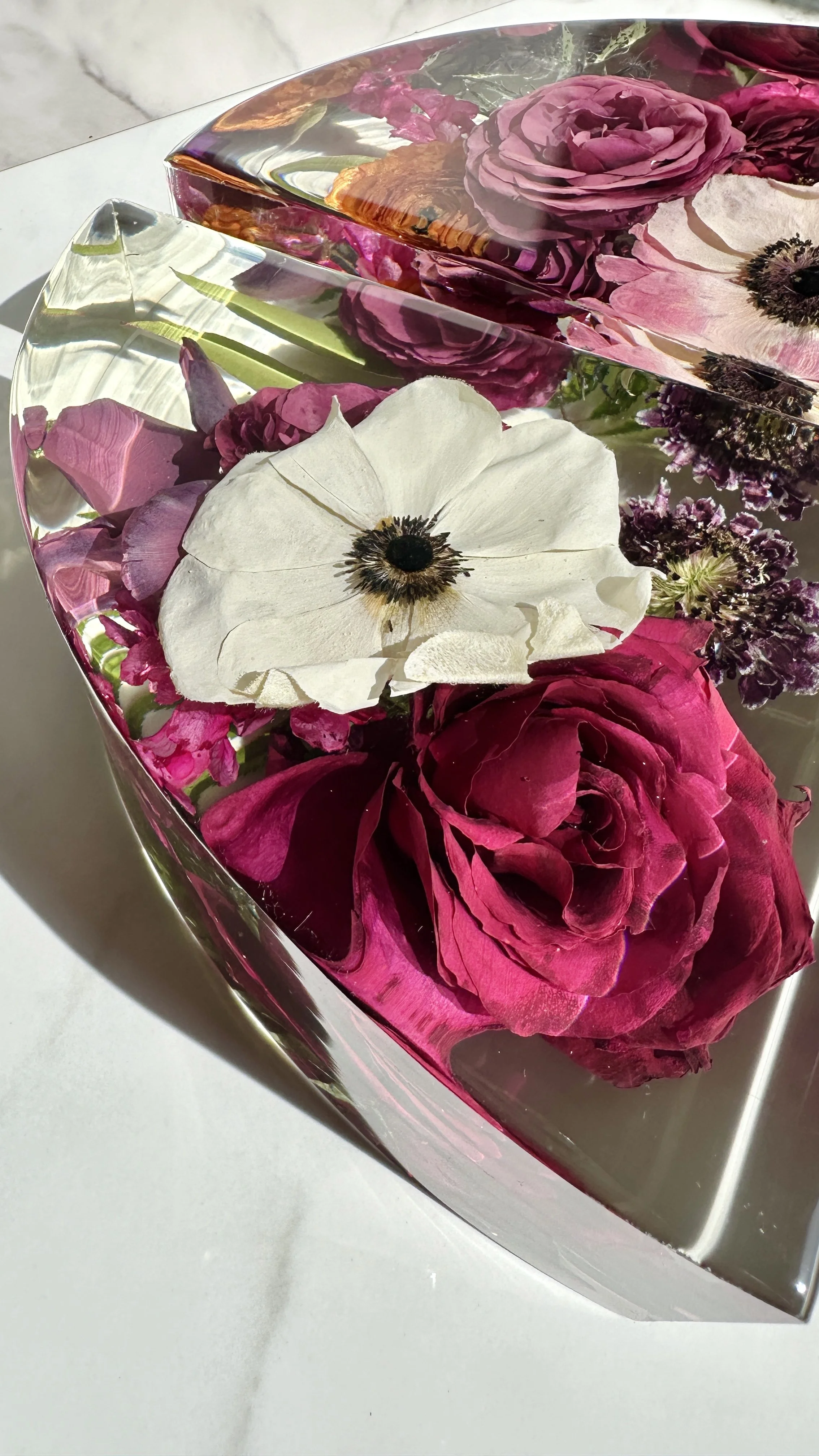Your wedding bouquet is more than just beautiful, it’s a living memory of one of the most meaningful days of your life. Through resin designs or pressed floral frame art, we preserve your blooms with care, intention, and artistry. Each piece is thoughtfully crafted to reflect your unique style and tell your story in a way that lasts forever.